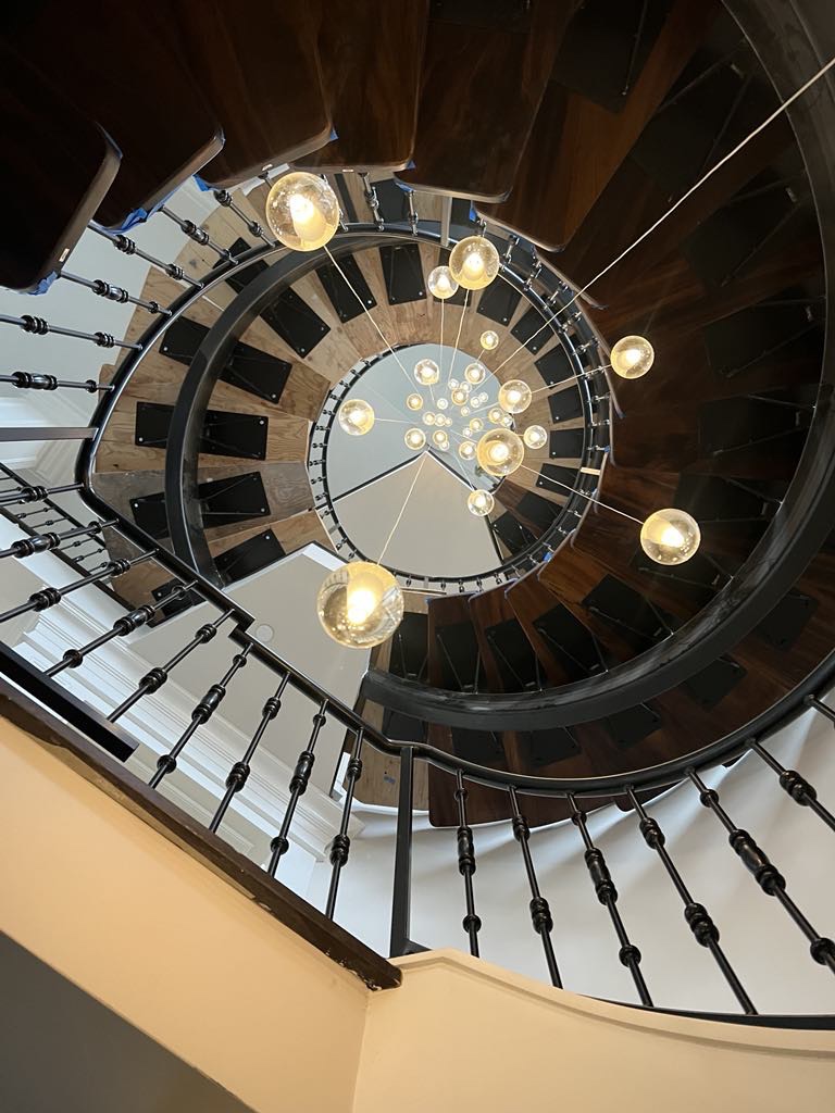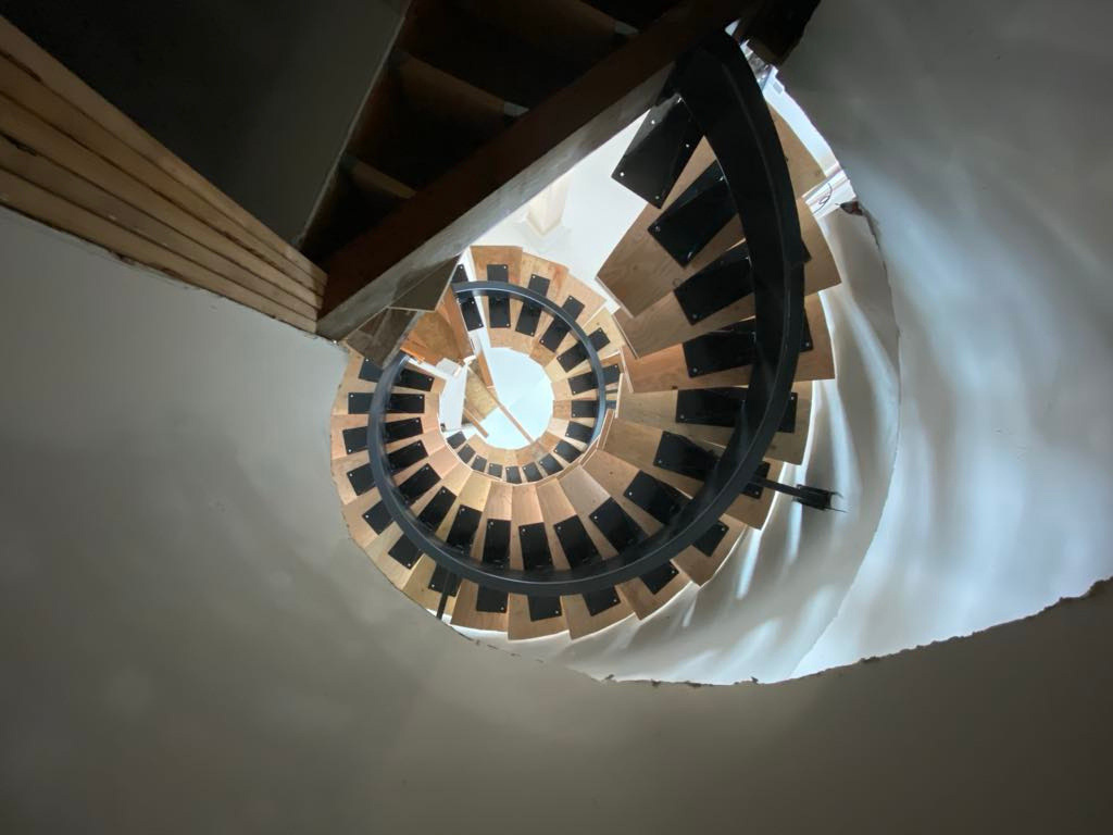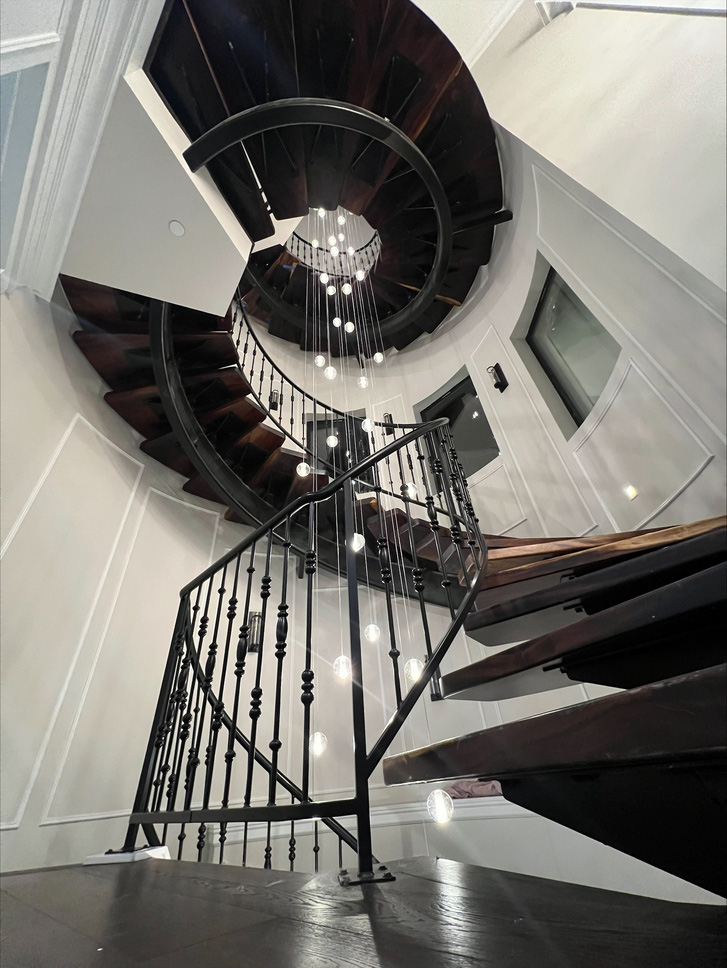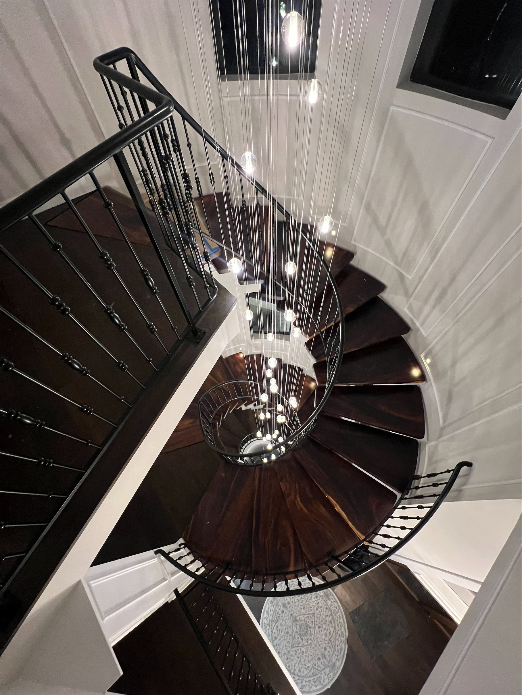This custom staircase was designed and built by Morris Malone for a custom residential home in Puyallup, WA. Cade collaborated closely with Morris throughout the entire process, from design to installation. Additionally, Cade worked directly with the client to source the materials, including the unique stair treads made from parota wood, found in the jungles of Puerto Vallarta.